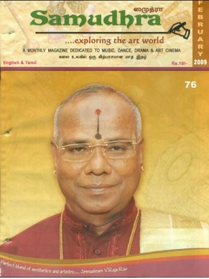 Feeling the need for an educative magazine covering all aspects of fine arts i.e. music, dance, drama & art cinema, Mudhra has launched Samudhra, edited by Dr.Radha Bhaskar which aims at exploring the art world in its full depth. Samudhra contains interviews of leading artists and art related personalities, regular column on understanding ragas and cutcheri format, interesting articles, reviews of events, books. Every year, a senior musicologist/ critic/ writer is honoured with the title “Gnana Samudhra” in recognition of his service to the art field. This Magazine was started in 2002 and published till 2019. Around 205 issues have been published successfully. After Covid 19 this got discontinued and now many interesting topics Dr.Radha Bhaskar writes on her face book page.
